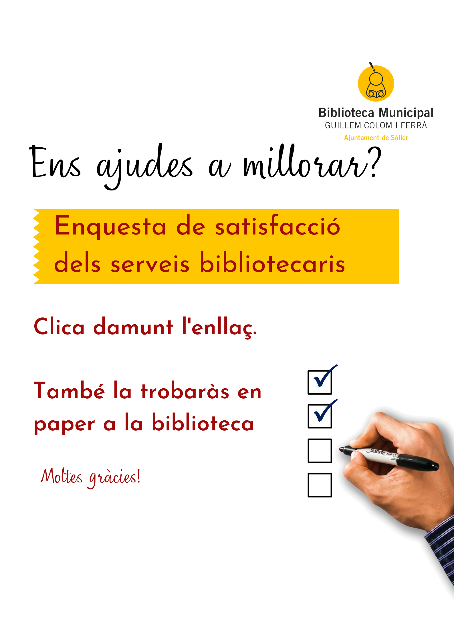 Des de la biblioteca ens agradaria conèixer la vostra opinió, al següent enllaç podeu contestar una breu enquesta.