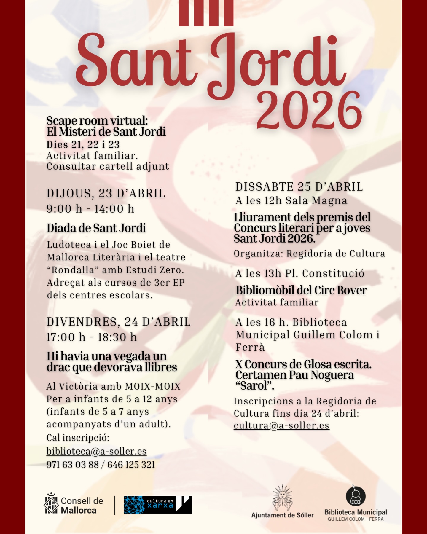 Enguany hem preparat una setmana plena de cultura, llibres i activitats per a totes les edats a Sóller. Preneu nota del programa!