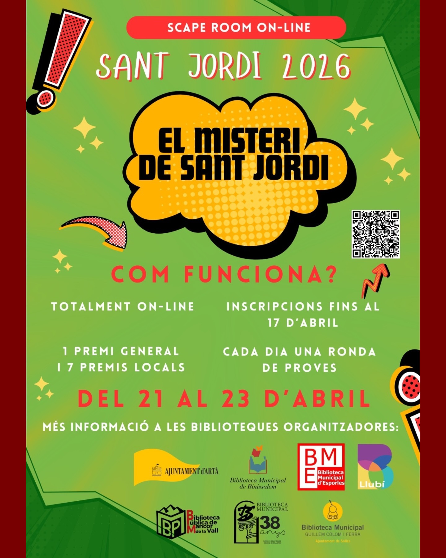 21, 22 i 23 d’abril: Escape room virtual “El Misteri de Sant Jordi” (Activitat familiar).