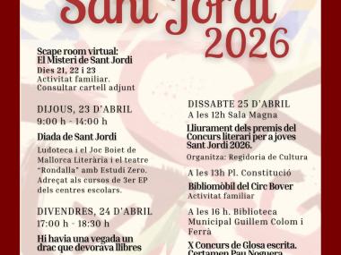 12h: Lliurament dels premis del Concurs literari per a joves Sant Jordi 2026 a la Sala Magna de l’Ajuntament.