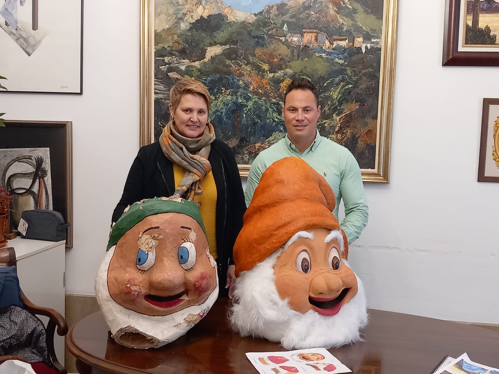 Aquest divendres, Pep Muñoz i Joana Maria Amengual ens han visitat per mostrar-nos el procés de restauració dels set caparrots nans, una tasca molt improtant que permetrà lluir aquestes figures amb importants millores.
