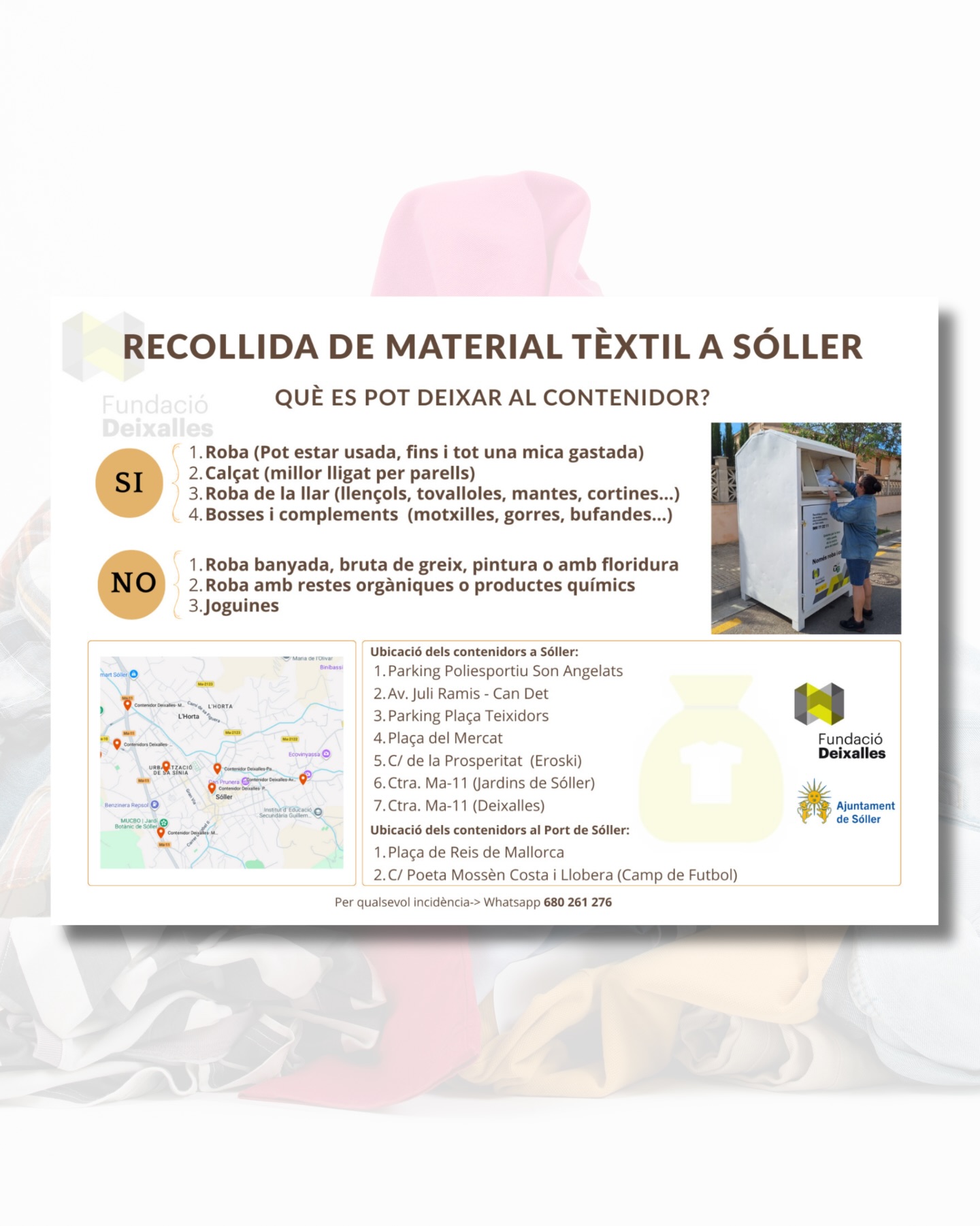 Sabies que a Sóller disposam de contenidors específics per a la recollida de roba i material tèxtil?