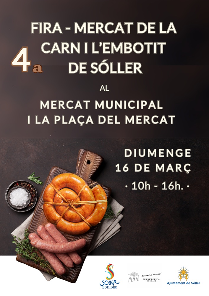 El proper diumenge, 16 de març, de 10 h a 16 h, el Mercat Municipal i la Plaça del Mercat acolliran la quarta edició de la Fira – Mercat de la Carn i l’Embotit de Sóller, una jornada que combina gastronomia, cultura i tradició.