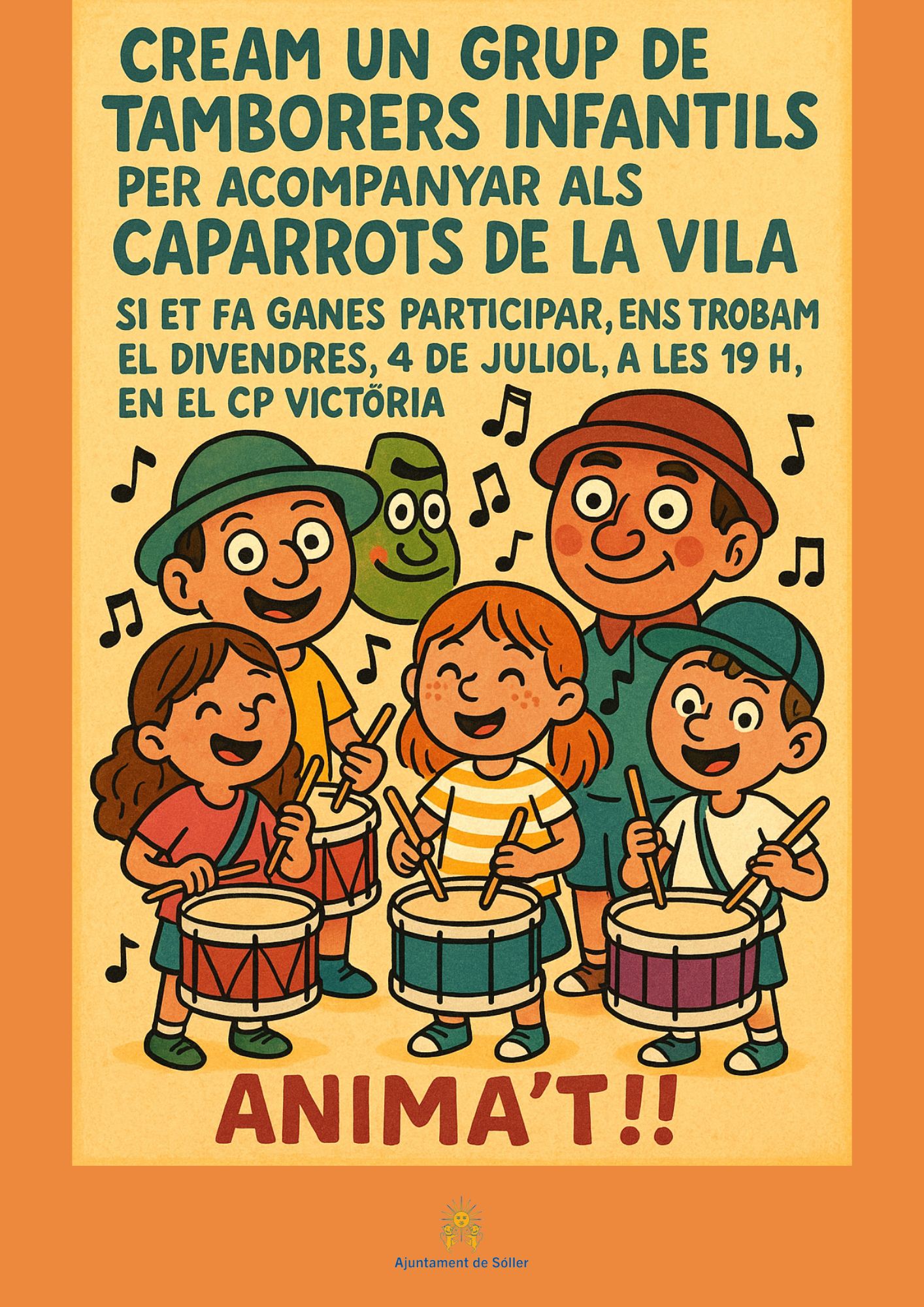 La regidoria de Cultura de l’Ajuntament de Sóller està creant un grup de tamborers infantils per acompanyar als estimats Caparrots de la Vila!