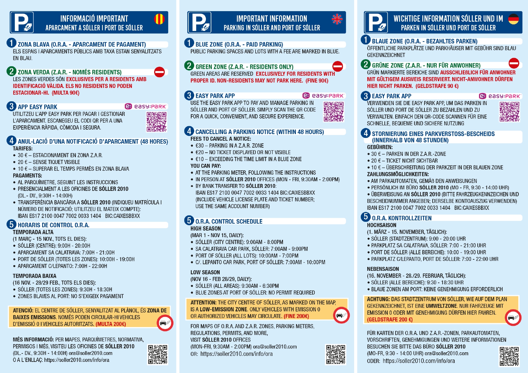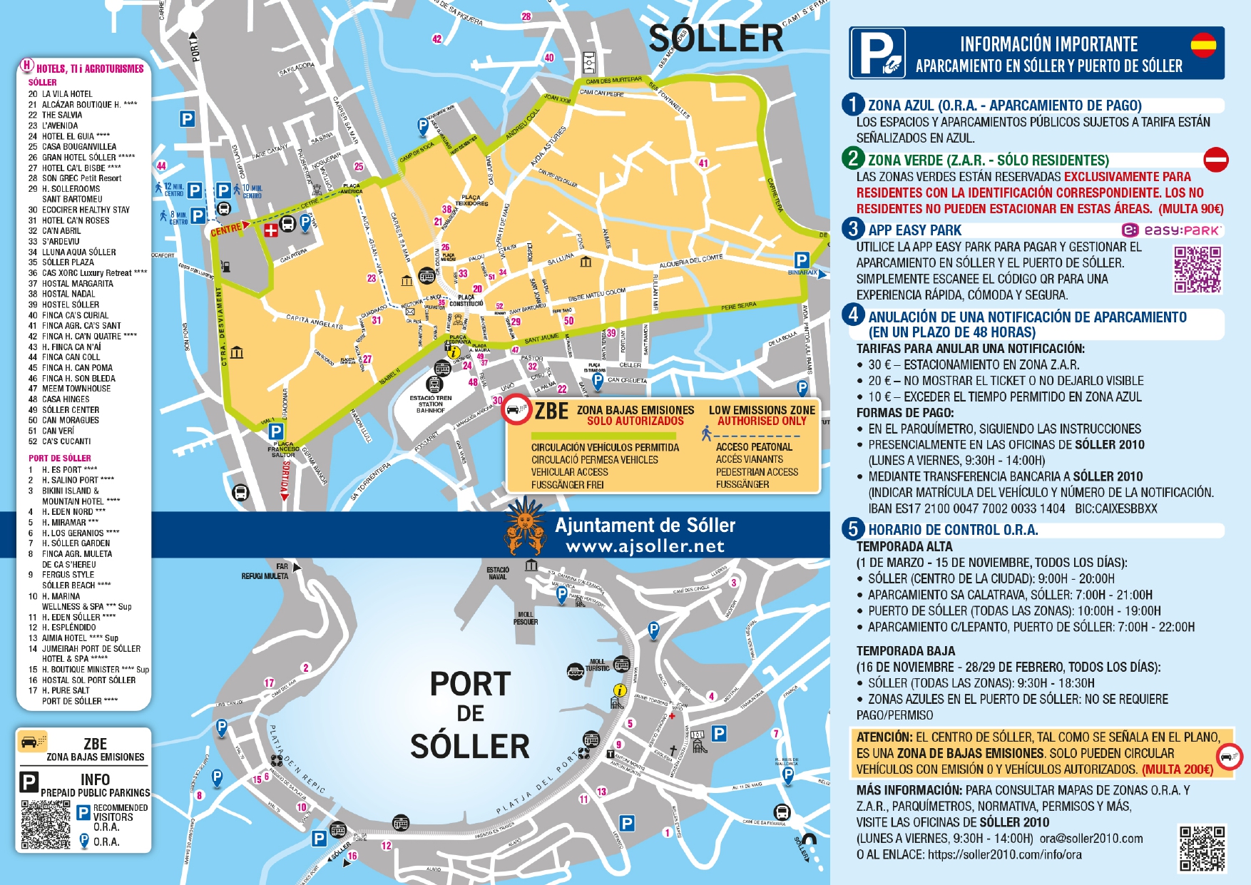 Informations importantes – stationnement à Sóller et au port de Sóller